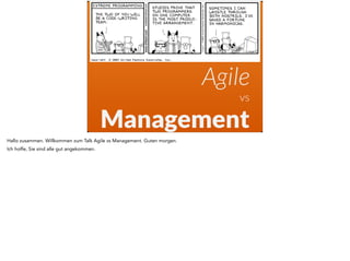 Der Vortrag "Agile vs Management" thematisiert das Phänomen des Nichtwissens im Management-Kontext, insbesondere durch das Beispiel von Donald Rumsfelds Unterscheidung zwischen bekannten und unbekannten Unbekannten. Der Referent zeigt auf, dass Schätzungen in Softwareprojekten häufig ungenau sind, da selbst erfahrene Entwickler oft nicht wissen, was sie nicht wissen, was zu hohen Misserfolgsquoten führt. Das Cynefin-Framework wird vorgestellt, um die Komplexität und Dynamik von Managementaufgaben und deren Wahrnehmung durch Führungskräfte zu erklären.
