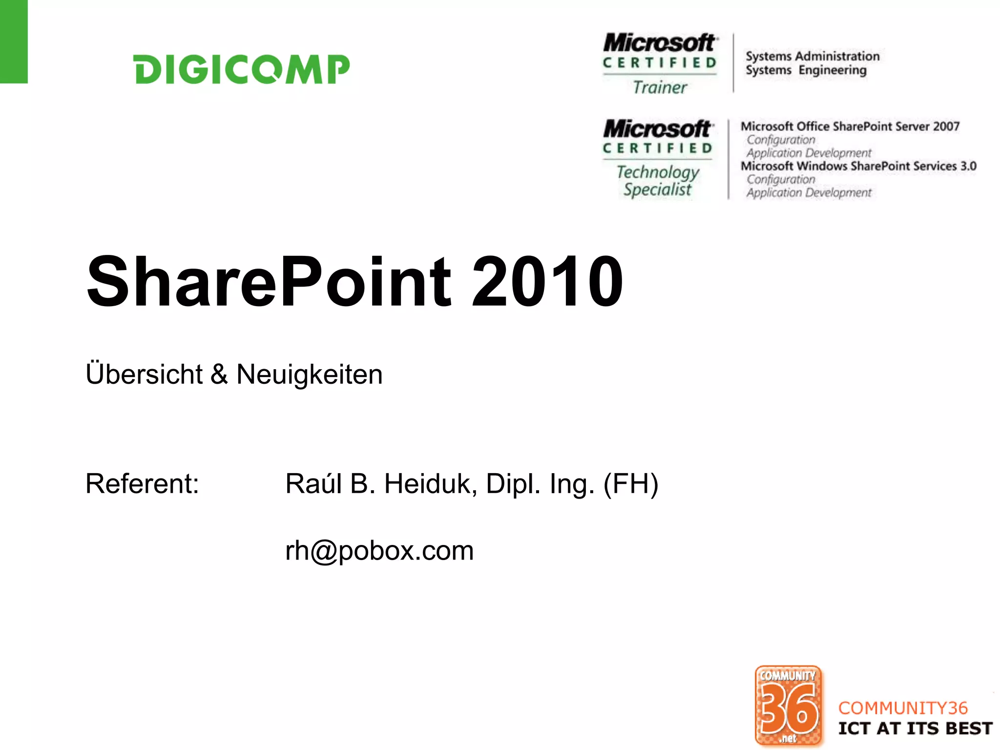 Die Präsentation zu SharePoint 2010 umfasst eine Übersicht über relevante Neuerungen, wie die Multifunktionsleiste, integrierte mobile Anwendungen und verbesserte Benutzeroberflächen. Schlüsselthemen sind auch die Unterstützung von Inhalten, Metadaten, erweiterte Suchfunktionen und Möglichkeiten der Zusammenarbeit. Zudem werden die Analyse- und Entscheidungsunterstützung durch verbesserte Datenvisualisierung und Integration von Unternehmensdaten hervorgehoben.