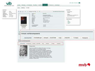 Das Dokument beschreibt die Bedürfnisse und Vorteile für Verlage und Buchhändler im B2B-Bereich der Buchbranche, einschließlich Umsatzsteigerung und effizienter Distribution von Marketingmaßnahmen. Es hebt die Bedeutung einer zentralen Datenbank hervor, die konsolidierte Katalogdaten und personalisierte Empfehlungen bietet. Zudem wird die Vernetzung zwischen Verlagen, Buchhändlern und Lesern betont, um ein besseres Einkaufserlebnis zu schaffen.