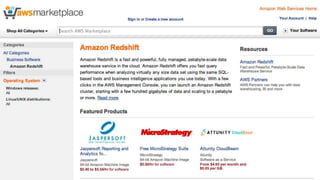 Amazon Redshift ist ein vollständig verwalteter, schneller und kostengünstiger Datenlagerdienst, der eine hohe Flexibilität und Abrechnung nach Nutzung bietet. Es unterstützt paralleles Laden von Daten und bietet eine Architektur mit Leader- und Compute-Knoten zur Optimierung von Abfragen und Datenmanagement. Redshift ist kompatibel mit bestehenden ETL- und BI-Tools und bietet umfassende Sicherheits- und Verfügbarkeitslösungen, einschließlich kontinuierlicher Backups auf Amazon S3.
