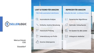 Das Dokument beschreibt Repricing-Strategien für den Erfolg in der Amazon Buy Box und hebt die Bedeutung verschiedener Faktoren wie Preis, Versandmethoden und Verkäuferbewertungen hervor. Es erläutert die Vorteile dynamischer Preisoptimierung und zeigt, wie Händler durch den Einsatz von Repricern ihre Umsätze und Deckungsbeiträge steigern können. Zudem werden individuelle Strategien vorgeschlagen, um die optimale Preisgestaltung basierend auf Marktdaten und Kaufverhalten zu erreichen.