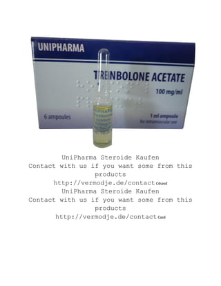 Das Dokument enthält Links und Kontaktinformationen für den Kauf von Anabolika über die Website vermodje.de. Es wird darauf hingewiesen, dass Interessierte über ein Kontaktformular Verbindung aufnehmen können, um Produkte von verschiedenen Anbietern wie Vermodje, Unipharma und GM Pharmaceuticals zu bestellen. Die Informationen sind hauptsächlich auf den Erwerb von Testosteron und anderen Steroiden ausgerichtet.
