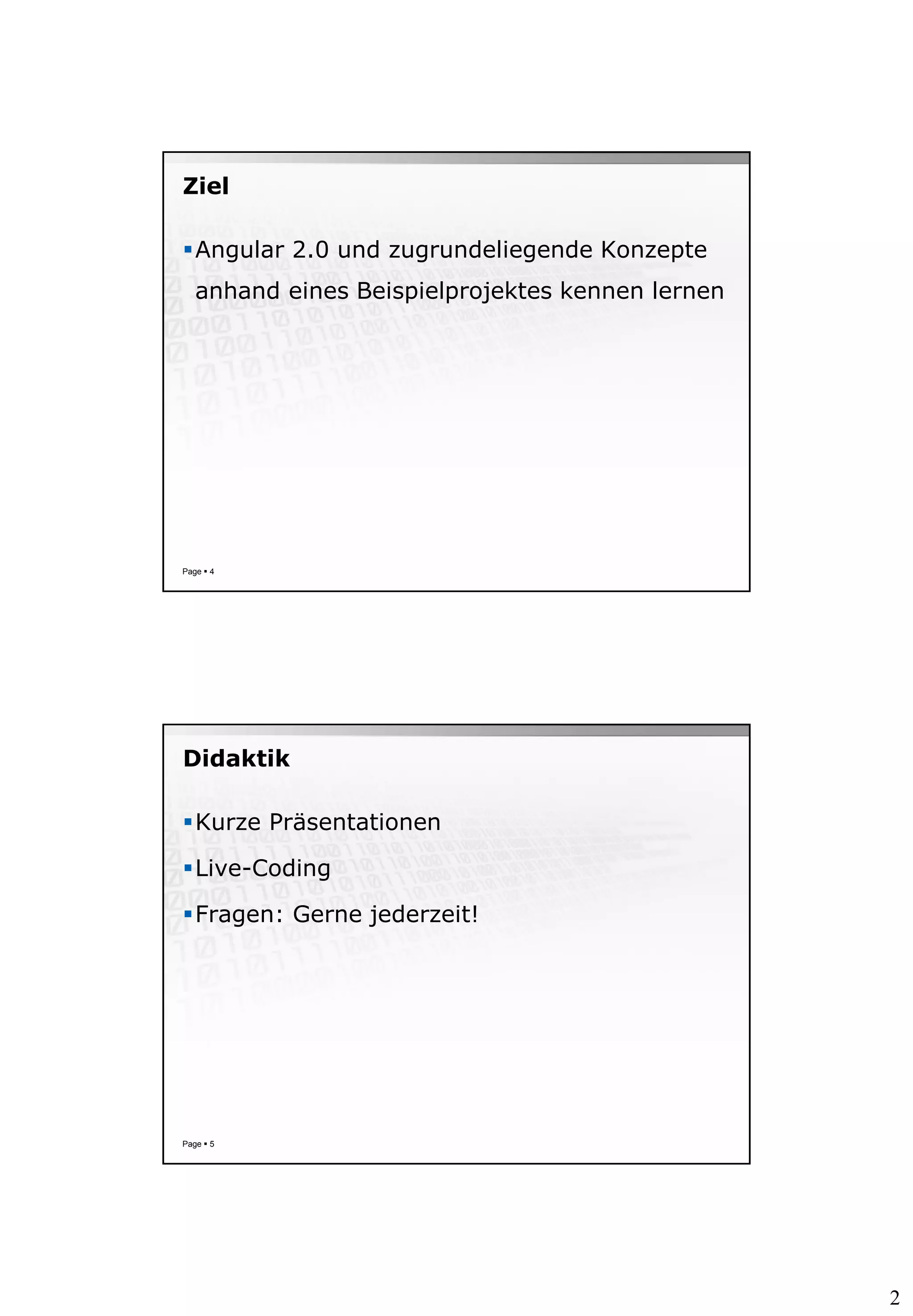 Das Dokument behandelt Angular 2.0, eine moderne Plattform zur Entwicklung von Webanwendungen, und gibt einen umfassenden Überblick über dessen Konzepte, einschließlich Komponenten, Datenbindung, Routing und Formularverarbeitung. Es thematisiert die Herausforderungen und Unterschiede zwischen AngularJS 1.x und Angular 2, sowie Migrationspfade und Best Practices für eine effizientere Entwicklung. Abschließend wird die Relevanz von Angular 2 als leistungsfähiges Framework hervorgehoben.