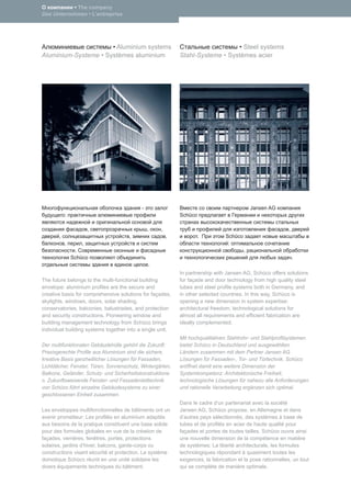 Schüco ist ein führendes europäisches Unternehmen für systemgestütztes Bauen mit Aluminium-, Stahl-, Kunststoff- und Solarprodukten und bietet umfassende Lösungen für Gebäudehüllen sowie spezielle Softwarelösungen. Als global agierendes Unternehmen kooperiert Schüco mit Architekten, Investoren und Herstellern und nutzt eine Vielzahl von Technologien, um innovative Produkte und Systeme zu entwickeln, die sowohl funktional als auch ästhetisch sind. Aluminium wird dabei als vielseitiges, wartungsfreies Material hervorgehoben, das sich ideal für moderne Architektur eignet und umweltfreundlich ist.