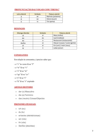 Das Dokument bietet einen umfassenden Deutschkurs auf A1.1-Niveau, der Vokabeln, Grammatik, Konjugationen von Verben und grundlegende Phrasen umfasst, die für Anfänger wichtig sind. Es behandelt auch Themen wie Zahlen, Monate, Wochentage, öffentliche und persönliche Fragen sowie kulturelle Aspekte. Der Kurs befasst sich mit Aussprache, Artikel und der Verwendung von Pronomen in verschiedenen Kontexten.