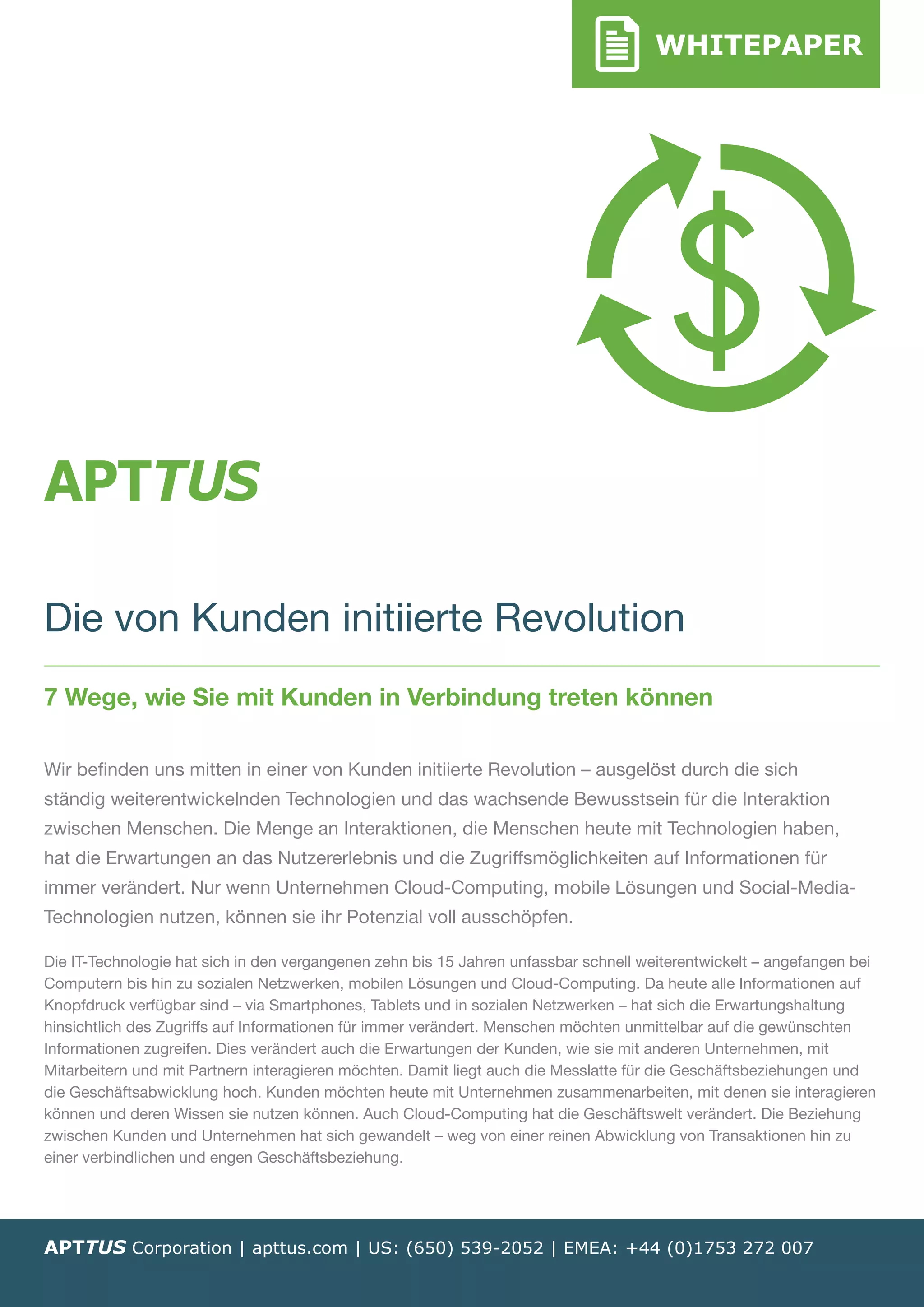 Die von Kunden initiierte Revolution hat die Erwartungen an Unternehmen verändert, die nun moderne Technologien wie Cloud-Computing, mobile Lösungen und soziale Medien nutzen müssen, um in Kontakt zu treten und eine enge Beziehung zu ihren Kunden aufzubauen. Der Zugang zu Informationen und die Interaktivität sind entscheidend, da Kunden zunehmend eine aktive Rolle in der Informationsbeschaffung und im Geschäft mit Anbietern einnehmen. Innovative Technologien ermöglichen Unternehmen, sich an den Bedürfnissen ihrer Kunden zu orientieren und effektivere Geschäftsbeziehungen zu entwickeln.