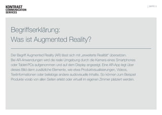 Die Studie zur Nutzerakzeptanz von Augmented Reality (AR) zeigt, dass die Technologie zunehmend an Bedeutung gewinnt, insbesondere in den Bereichen Mode und Wohnungseinrichtung. 80% der 1.002 Befragten äußern Interesse an AR-Apps zur Planung und Durchführung von Einkäufen. Das Interesse an AR-Anwendungen erstreckt sich über Geschlechter- und Generationengrenzen hinweg.