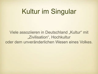 Das Dokument diskutiert die Beziehung zwischen dem Christentum und Kultur, insbesondere im Kontext der Pluralität und Dynamik von Kulturen. Es definiert 'Inkulturation' als einen dialogischen Prozess, der solidarische, kreative und kritische Interaktionen zwischen dem Christentum und verschiedenen (Sub-)Kulturen fördert. Der Text hinterfragt auch die Herausforderungen und Chancen dieser Interaktion in einer multikulturellen Gesellschaft in Deutschland.