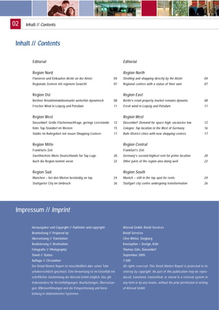 Der Retail Market Report für Deutschland 2005-2006 dokumentiert die dynamische Entwicklung des Einzelhandelsmarktes trotz ungünstiger Umsatzverhältnisse, mit einer hohen Nachfrage nach Verkaufsflächen in städtischen Lagen. Investoren aus angelsächsischen und skandinavischen Ländern zeigen großes Interesse an deutschen Einzelhandelsimmobilien, und neue Storekonzepte kommen regelmäßig auf den Markt. Der Bericht bietet umfassende Einblicke in verschiedene Regionen Deutschlands und betont die Notwendigkeit präziser Marktinformationen für den Erfolg im Einzelhandel.