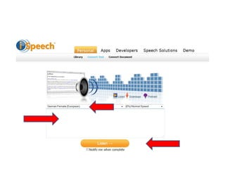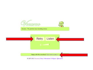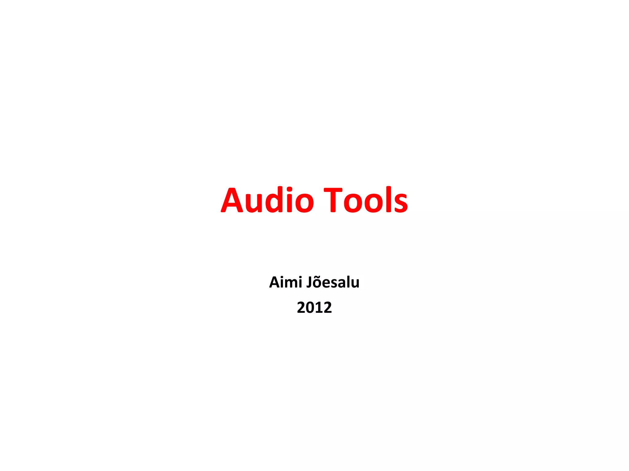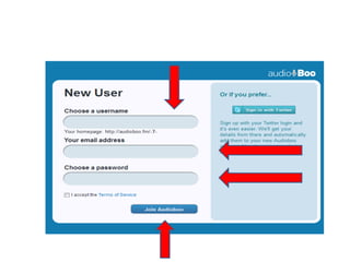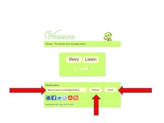 Das Dokument diskutiert verschiedene Audio-Tools wie Vocaroo, Audiopal und Audioboo, die es Nutzern ermöglichen, Text in Sprache umzuwandeln und diese über E-Mail zu teilen. Es bietet Links zu Beispielen und Anleitungen für die Verwendung dieser Tools. Ziel ist es, den Nutzern einen erfolgreichen Einstieg in die Verwendung von Audioaufnahmen zu ermöglichen.