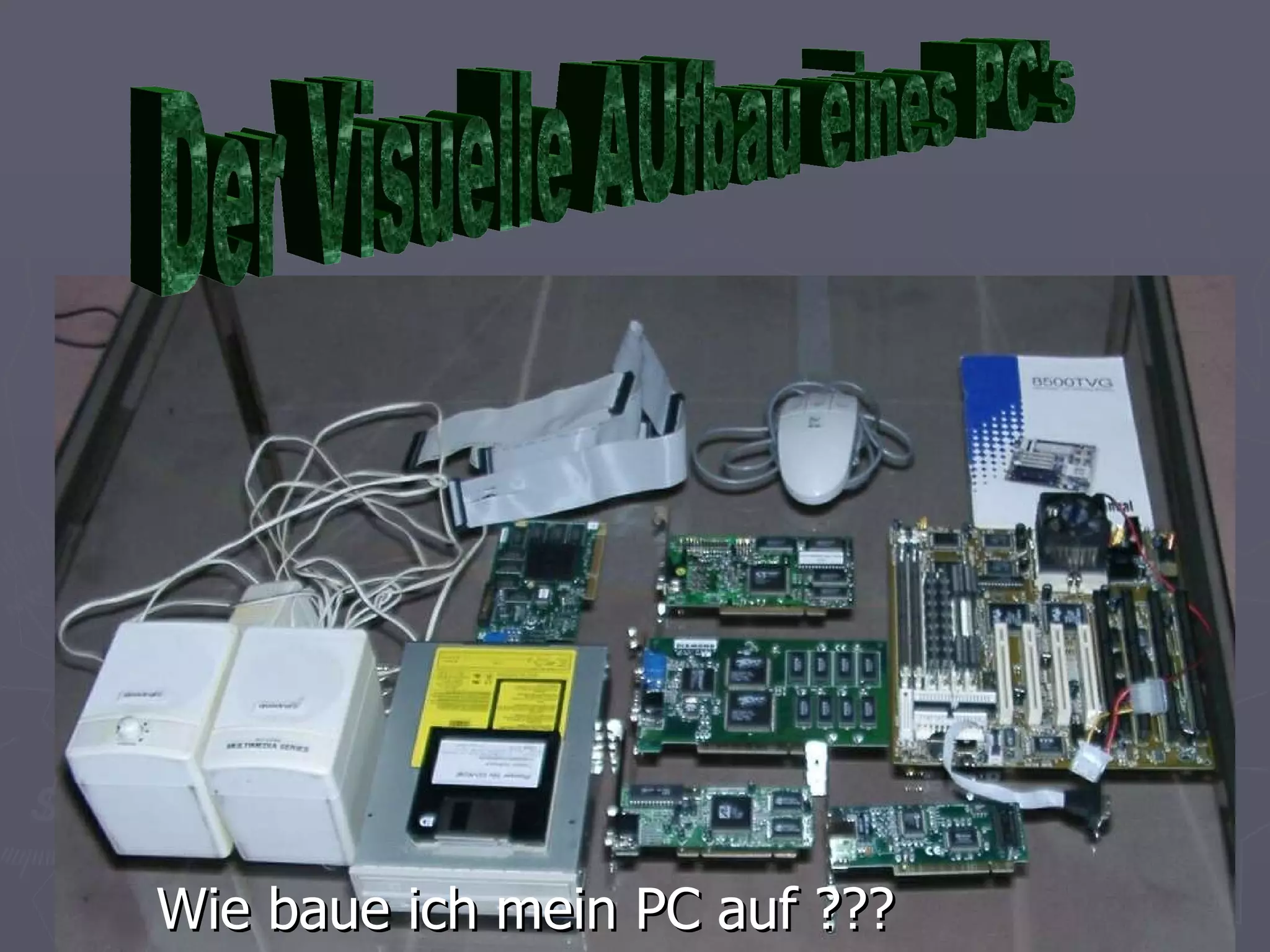 Der Dokument beschreibt eine Schritt-für-Schritt-Anleitung zum Zusammenbauen eines PCs, beginnend mit dem Gehäuse und dem Motherboard. Es hebt wichtige Schritte hervor, wie das Einfügen von RAM, Prozessor und Kühler, sowie das Verbinden von Kabeln und Geräten. Am Ende wird darauf hingewiesen, dass eine ansprechendere PC-Konfiguration auch von der Investition in das Gehäuse abhängt.