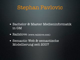 Das Dokument beschreibt eine Veranstaltung zum Thema Semantisches Web und Linked Data, die eine Einführung in die grundlegenden Konzepte und praxisnahe Projekte umfasst. Die Teilnehmer werden ermutigt, aktiv teilzunehmen und in Gruppen zu arbeiten, um theoretisches Wissen praktisch umzusetzen. Es werden wöchentliche Sitzungen sowie eine Abschlusspräsentation stattfinden, wobei der nächste Termin für weitere Themen angekündigt ist.