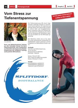 Die Ausgabe der Zeitschrift 'Erfolg' vom April 2011 thematisiert verschiedene Aspekte des Unternehmertums in der Schweiz, einschließlich der aktiven Teilnahme von KMUs an Netzwerkveranstaltungen und den Herausforderungen durch steigende Betriebskosten. Zudem wird die Bedeutung von Kundenorientierung und Service Excellence betont, um sich im Wettbewerb abzuheben. Die Ausgabe enthält auch Tipps zur Verbesserung von Dienstleistungen sowie Details zu bevorstehenden Veranstaltungen wie der KMU Golf Trophy.