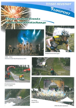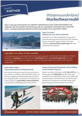 Das Dokument beschreibt umfassend die Aktivitäten und Veranstaltungen der Hochschwarzwald Tourismus GmbH im Jahr 2013, einschließlich Pressereisen, Pressekonferenzen und Teilnahme an Messen. Besonders betont wird der Wandel der Organisation von einer Destinationsmanagement- zu einer Destinationsserviceorganisation, mit einem Fokus auf verschiedene Lifestyle-Zielgruppen. Zudem wird auf die Herausforderungen und Pläne zur nachhaltigen Entwicklung des Wintersports im Feldberg-Gebiet eingegangen.
