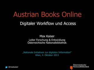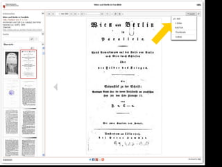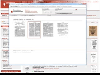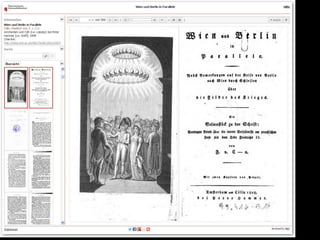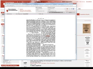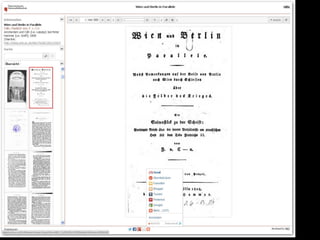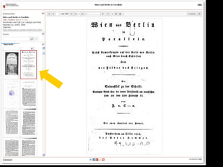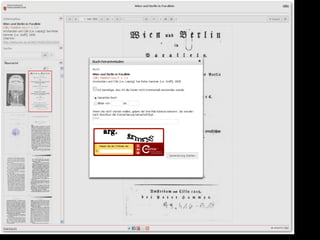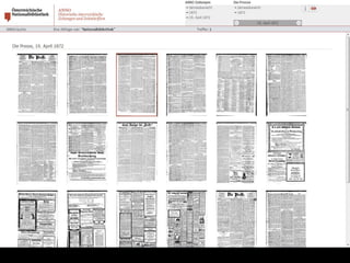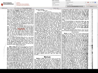 Das Dokument beschreibt den Fortschritt und die Ziele des Projekts zur digitalen Erfassung des historischen Buchbestands der Österreichischen Nationalbibliothek, bei dem bereits über 185.000 Bände digitalisiert wurden. Es hebt die Bedeutung der digitalen Zugänglichkeit für die Forschung hervor und erläutert den technischen Workflow sowie die Herausforderungen in der Digitalisierung. Zudem wird auf zukünftige Entwicklungen und die Integration von Volltextsuche und neuen Recherchemöglichkeiten in digitale Forschungswerkzeuge eingegangen.