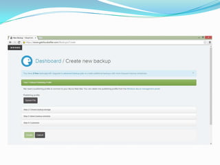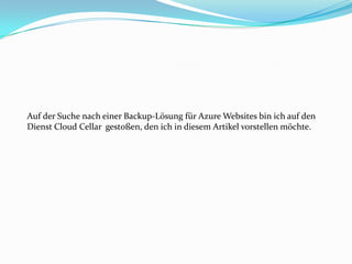 Der Artikel beschreibt die Nutzung des Dienstes Cloud Cellar zur automatisierten Sicherung von Azure-Websites, insbesondere für die Demoseite www.opencph.de. Nach der Registrierung bei Cloud Cellar können Benutzer Backups erstellen, indem sie das Veröffentlichungsprofil ihrer Azure-Website hochladen, den Speicherort und den Zeitplan für Backups festlegen sowie auswählen, ob Dateien und Datenbanken gesichert werden sollen. Cloud Cellar bietet eine benutzerfreundliche Schnittstelle für das Backup und die Wiederherstellung von Websites und befindet sich derzeit in der Beta-Phase, bietet jedoch bereits praktische Funktionen und günstige Preisoptionen.