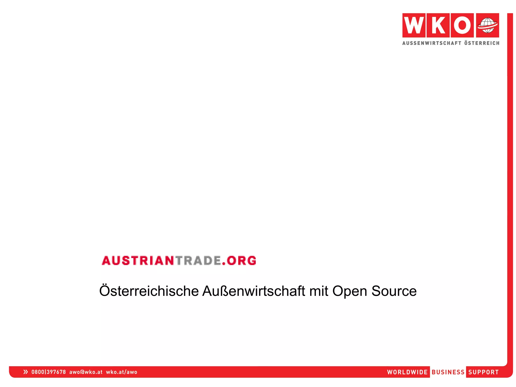 Die Außenwirtschaft Österreich (AWO) nutzt das Content-Management-System Typo3, um die Web-Präsenz ihrer 70 Außenhandelsstellen in 53 Ländern zu optimieren. Das Projekt, das 2005 begann, zielt darauf ab, mehrsprachigen Content einfach zu verwalten und lokale Inhalte sowie Neuigkeiten bereitzustellen. Nach erfolgreichem Rollout und Schulungen zeigt das System eine steigende Anzahl von Besuchern und erhält positives Feedback von Nutzern und Kunden.