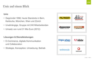Das Dokument behandelt die Entwicklungen im B2B-E-Commerce und hebt den dominierenden Anteil von 95% des B2B-Geschäfts in Deutschland hervor. Es werden Vorteile des Online-Einkaufs gegenüber traditionellen Printkatalogen aufgezeigt, sowie die wachsende Nachfrage nach web-basierten Lösungen. Zudem wird auf Potenziale und Herausforderungen von Unternehmen im E-Business eingegangen.