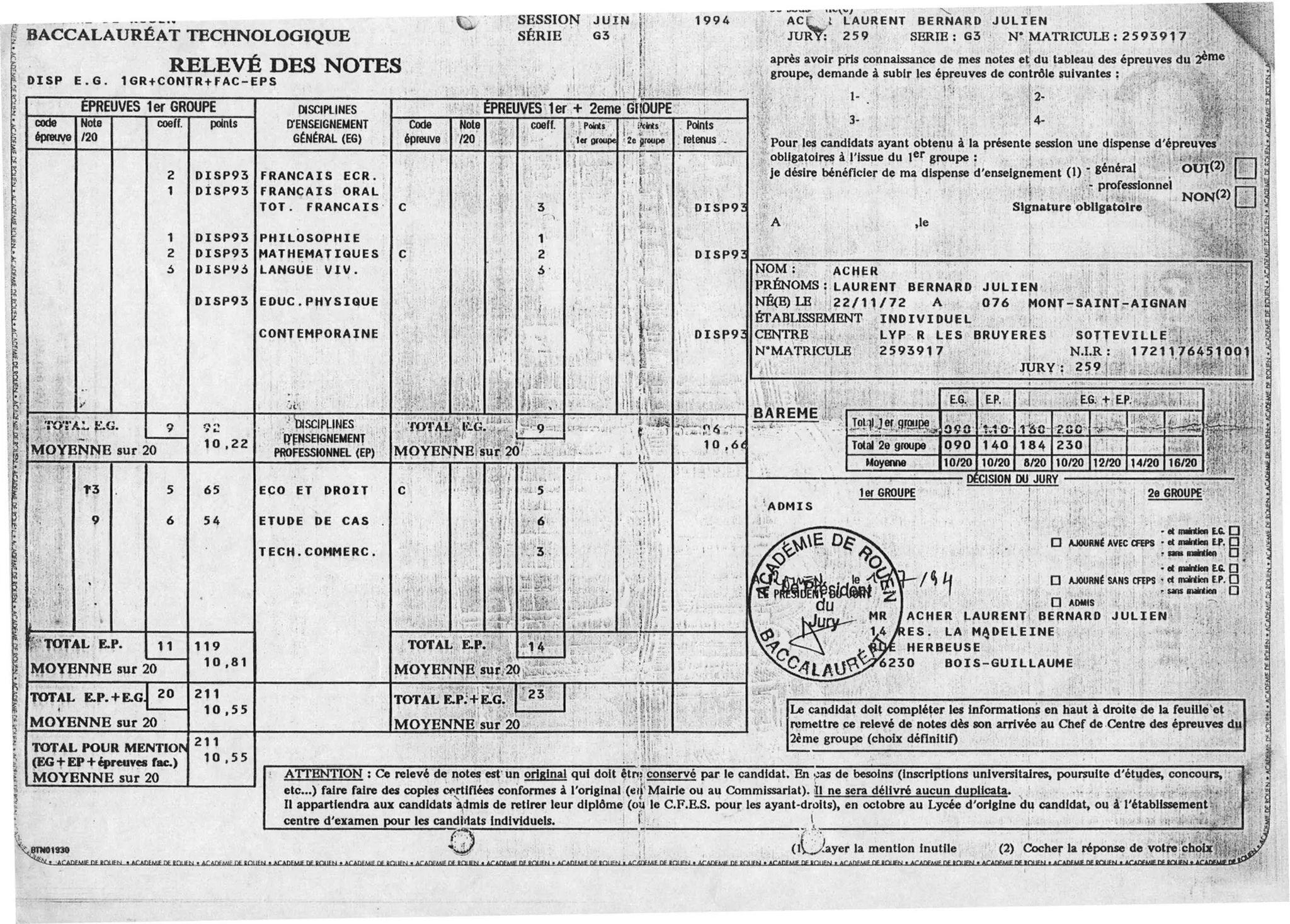 Bac G3 ( Notes En 1994 )