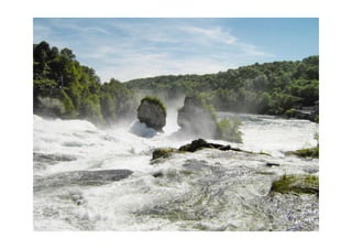 Der Rheinfall ist der größte Wasserfall Europas und liegt an der Grenze zwischen den Kantonen Schaffhausen und Zürich in der Schweiz. Der Wasserfluss reicht je nach Jahreszeit von 2.832 bis 5.720 m³/s, wobei ein Großteil des Wassers nachts und außerhalb der Saison umgeleitet wird. Zudem wird auf die psychologischen Einflüsse des Rheinfalls hingewiesen, insbesondere auf die Erinnerungen von Carl Gustav Jung an die Gefahren rund um den Wasserfall.