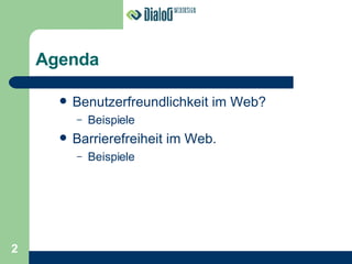 Das Dokument erörtert die Vor- und Nachteile einer eigenen Internetpräsenz für Unternehmen, wobei die Benutzerfreundlichkeit und Barrierefreiheit im Fokus stehen. Es wird betont, dass webseiten so gestaltet sein müssen, dass sie für alle Nutzergruppen zugänglich sind, einschließlich Menschen mit Einschränkungen. Zudem wird auf die Bedeutung von klarer Navigation, verständlichen Inhalten und technischer Optimierung hingewiesen, um potenzielle Kunden nicht auszuschließen und den Ruf des Unternehmens zu wahren.