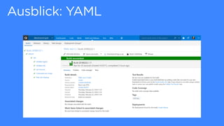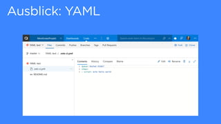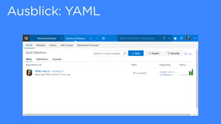 Das Dokument beschreibt eine Schulung über DevOps mit TFS, die Themen wie Build-Server, Qualitätssicherung, Release-Pipelines und Continuous Delivery behandelt. Es werden auch Aspekte der Build-Integration mit Git, Pull Requests und die Nutzung von YAML zur Definition deklarativer Buildprozesse angesprochen. Es enthält Kontakte und Links zu Ressourcen von den Referenten Neno Loje und Marc Müller.