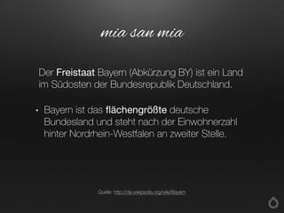Das Dokument bietet eine Einführung in die bayerische Kultur und Sprache für Anfänger und stellt Bayern als das flächengrößte Bundesland Deutschlands vor. Es enthält wichtige sprachliche Ausdrücke und Tipps für Reisende, wie man sich in verschiedenen Situationen zurechtfindet, einschließlich Hotelanfragen und Empfehlungen für Ausflüge. Zudem werden einige kulturelle Besonderheiten und humorvolle Ausdrücke in bayerischer Mundart angesprochen.