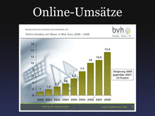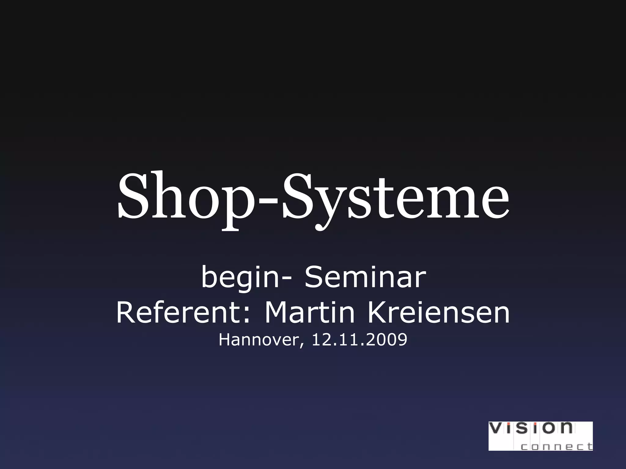 Das Seminar von Martin Kreiensen am 12.11.2009 behandelt die Entwicklungen im Online-Handel, insbesondere das geänderte Einkaufsverhalten von Kunden und die Wichtigkeit der Online-Reputation. Der Vortrag thematisiert verschiedene Shop-Systeme, zahlreiche Marketingmethoden sowie die Herausforderungen bei der Produktpräsentation und -verkäufen. Außerdem werden Vor- und Nachteile von Mietshops, Open-Source- und kommerziellen Systemen im E-Commerce erläutert.