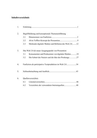 Die Bachelorarbeit von Annekatrin Bergemann untersucht die Auswirkungen der Prosumenten-Kultur auf die Literaturproduktion der Zukunft, insbesondere anhand des Phänomens der Fanfiction im Kontext des Web 2.0. Die Arbeit analysiert, wie sich das prosumerhafte Verhalten von Nutzern und die partizipative Kultur auf die Textproduktion auswirken und beleuchtet dabei spezifische Veränderungen in der Literaturproduktion, die durch digitalisierte und gemeinschaftlich erzeugte Inhalte bedingt sind. Anhand von Plattformen wie fanfiction.net und wattpad.com wird aufgezeigt, wie das Internet die Fangemeinschaften und die damit verbundene Literaturproduktion verändert hat.