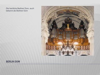 Das Dokument beschreibt verschiedene Attraktionen in Berlin, darunter den Berliner Dom und das Checkpoint Charlie Museum, das 1962 gegründet wurde. Es thematisiert die Bedeutung dieser Orte während des Kalten Krieges sowie das Brandenburger Tor als historisches Denkmal. Diese Sehenswürdigkeiten sind zentral für das Verständnis der Berliner Geschichte.