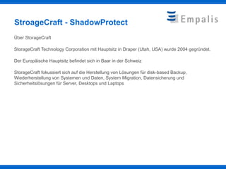 StorageCraft, gegründet 2004, bietet Lösungen für datengestütztes Backup, Wiederherstellung und Migration, insbesondere für Windows-basierte Systeme. ShadowProtect, das Hauptprodukt, erlaubt vollständige und inkrementelle Backups, Wiederherstellung von Dateien und Volumes sowie die Umwandlung von Backup-Images für virtuelle Maschinen. Das Tool ist benutzerfreundlich und eignet sich besonders für kleinere Umgebungen, fokussiert sich aber ausschließlich auf Windows-Systeme.