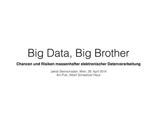 Das Dokument behandelt das Thema Big Data und dessen Chancen und Risiken, insbesondere im Kontext von Datenverarbeitung und -analyse. Es werden verschiedene Bereiche beleuchtet, in denen Big Data Anwendung findet, wie in der Wirtschaft, Politik und Überwachung, sowie einige Beispiele für dessen Anwendung und die damit verbundenen Herausforderungen. Abschließend wird auf die fortschreitende Entwicklung von Big Data und die Notwendigkeit neuer Berufe in diesem Bereich hingewiesen.