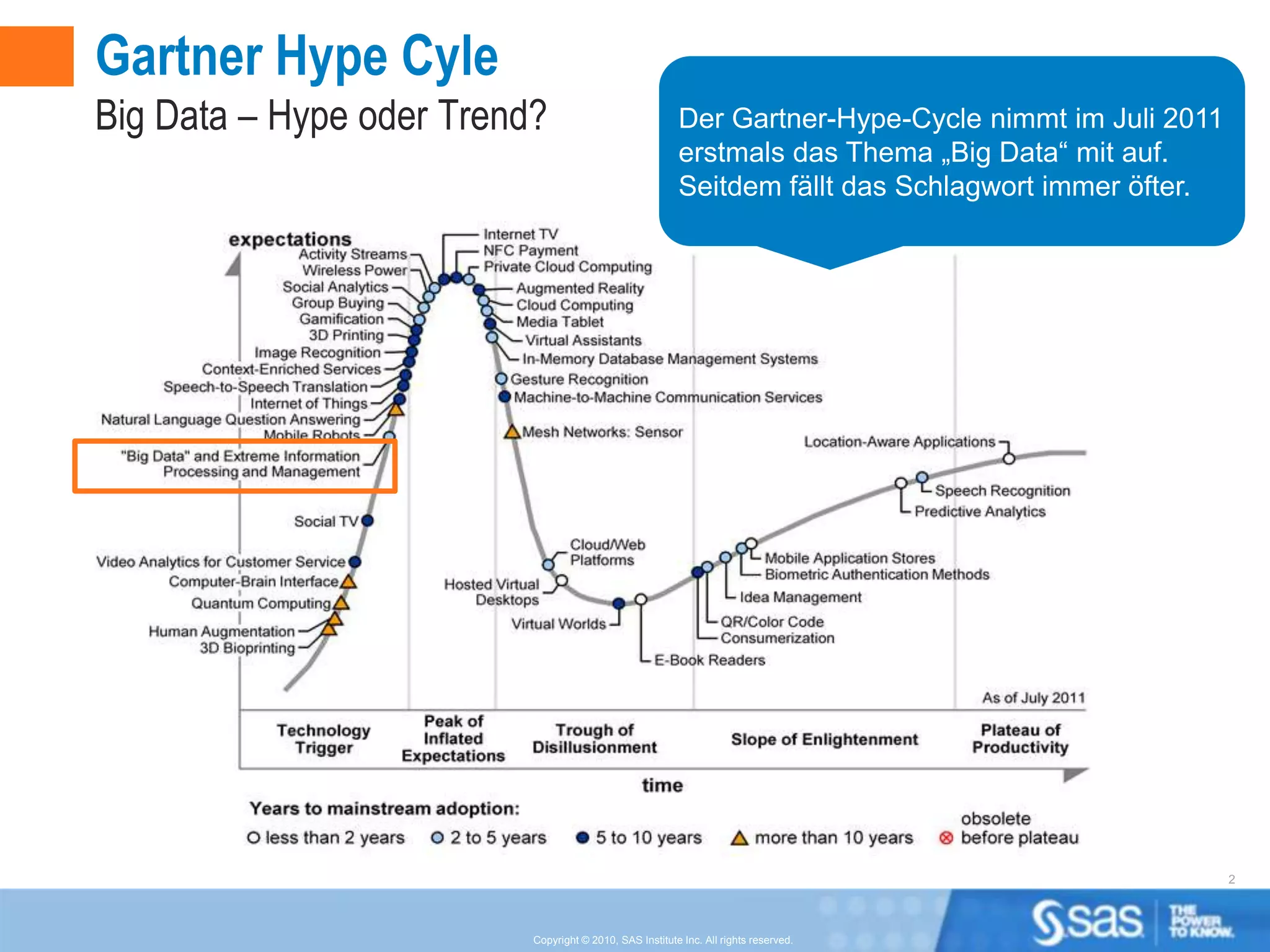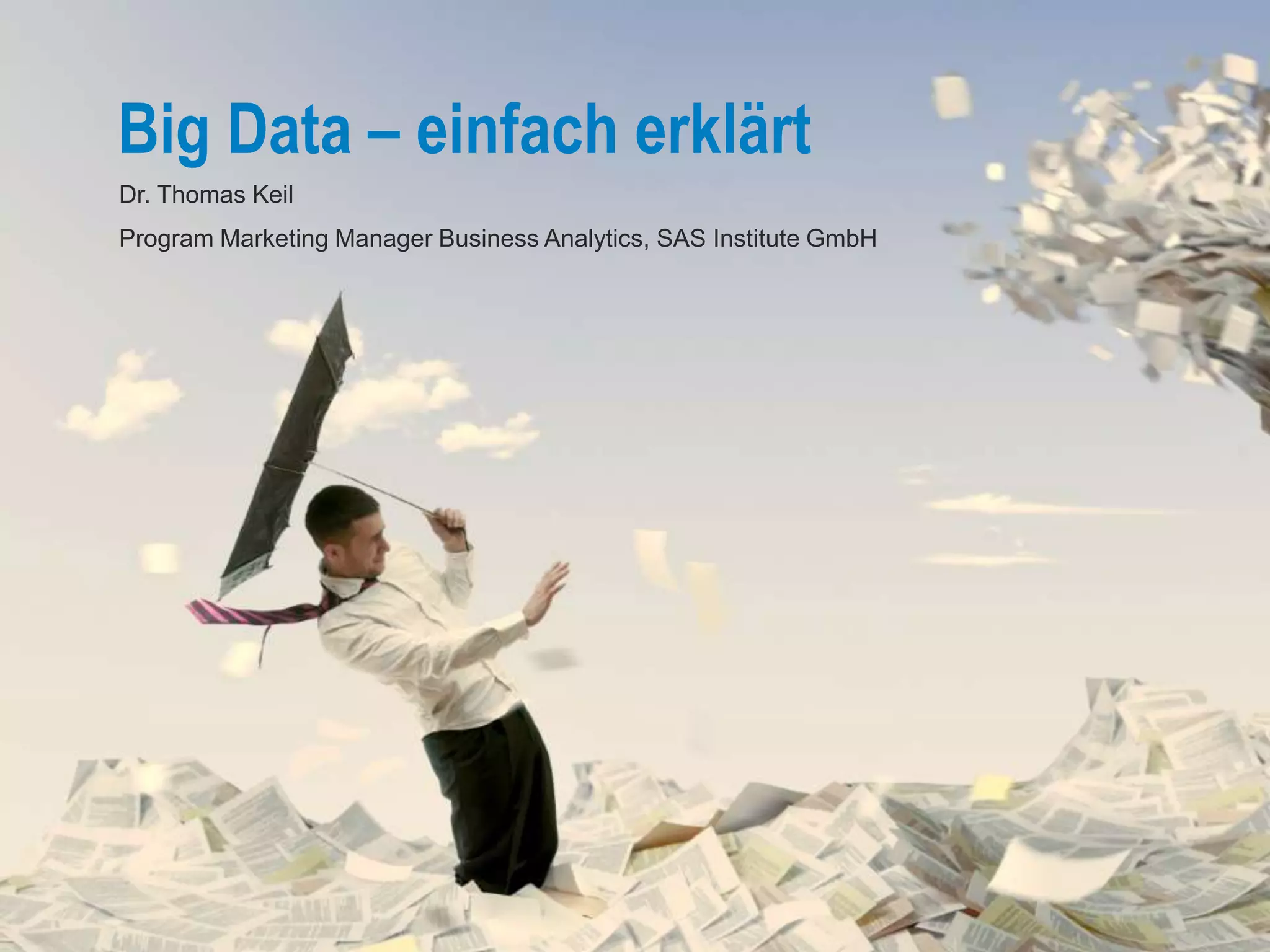 Das Dokument behandelt das Thema 'Big Data', das seit 2011 zunehmend an Bedeutung gewinnt, da die Menge heterogener Daten exponentiell wächst. Es beschreibt die Herausforderungen und Chancen, die mit der Verarbeitung und Analyse dieser riesigen Datenmengen verbunden sind, sowie Lösungsansätze zur effektiven Nutzung dieser Informationen in verschiedenen Branchen. Abschließend wird auf die Rolle von SAS und deren Technologien hingewiesen, die Unternehmen dabei unterstützen, den Wert von Big Data zu erkennen und zu nutzen.