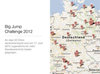 Am 17. Juni 2012 nahmen Jugendliche an der 'Big Jump Challenge 2012' teil, um für den Gewässerschutz zu demonstrieren, und sprangen in über 50 Gewässern deutschlandweit. Zu den teilnehmenden Orten gehörten Nagold, Hamburg, Frankfurt und viele weitere. Die Veranstaltung soll auf die Bedeutung von sauberem Wasser aufmerksam machen.
