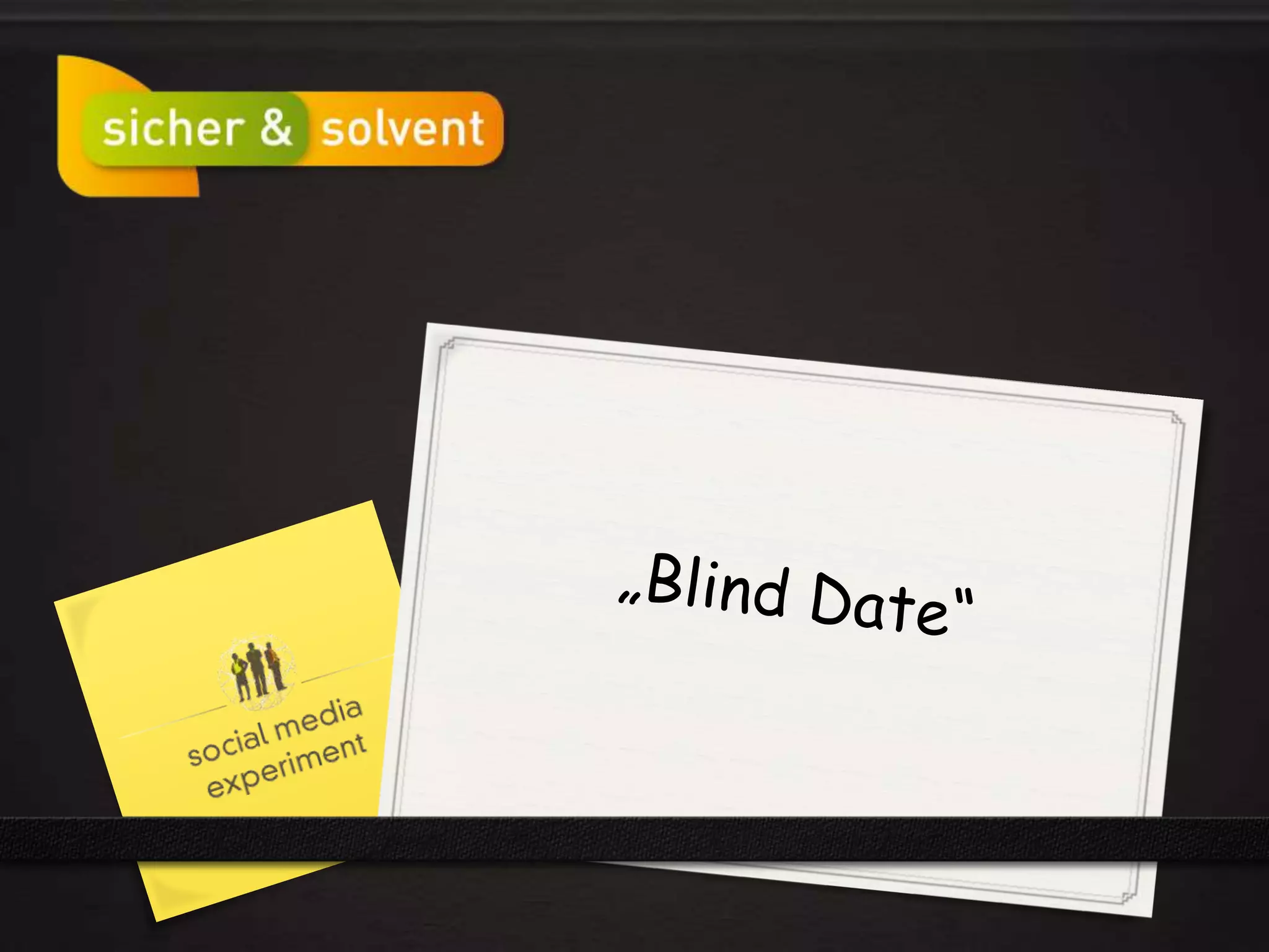 In dem Dokument wird von einem Mann berichtet, der zwei erfolglose Blinddates hatte, bevor er April trifft, die tolerant und fürsorglich ist. Die Ansprache der Zielgruppe hebt die Vorteile der Versicherung "sicher&solvent" hervor, die für unkomplizierte und risikofreie Bewerber geeignet ist. Der Verbreitungsweg für die Werbung erfolgt durch TV- und Kino-Spots sowie virale soziale Medien über humorvolle Inhalte.