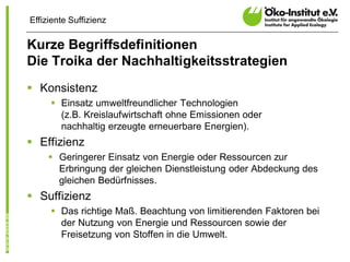 Der Vortrag von Jens Gröger auf dem Kongress 'Stromeinsparung in Haushalten' diskutiert das Konzept der 'effizienten Suffizienz', das Konsistenz, Effizienz und Suffizienz als wesentliche Strategien zur Reduktion des Energieverbrauchs und der Treibhausgasemissionen umfasst. Es wird betont, dass grundlegende Änderungen im Konsumverhalten notwendig sind, um ambitionierte Emissionsziele zu erreichen, während erläutert wird, dass Effizienzgewinne oft durch steigende Bedürfnisse überkompensiert werden. Der Vortrag schließt mit der Erkenntnis, dass ein Mix aus Konsistenz, Effizienz und Suffizienz notwendig ist, um höhere Einsparpotenziale zu erzielen.