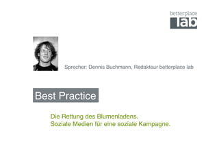 Im Jahr 2009 bedrohte eine finanzielle Krise den Blumenladen von Dirk Komorr-Hoang, die durch eine Krankheit verursacht wurde. Der Blogger Sachar Kriwoj organisierte eine Spendenkampagne über soziale Medien, die bis Weihnachten 6.000 Euro generierte, um den Laden zu retten. Die Kampagne hob die Bedeutung von Regionalität, seriöser Presse und persönlichem Engagement in sozialen Netzwerken hervor.