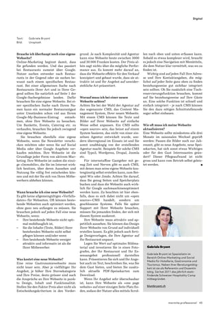 Eine eigene Webseite ist für Restaurants unerlässlich, da sie die Grundlage für Online-Marketing bildet und dabei hilft, bei Google-Suchen sichtbar zu sein. Neben der Attraktivität und User-Freundlichkeit sind Aspekte wie Mobiloptimierung, Content Management Systeme und regelmäßige Aktualisierungen entscheidend für den Erfolg der Webseite. Die Kosten für eine neue Webseite variieren stark und sollten nicht als einziges Entscheidungskriterium gesehen werden; wichtiger ist, dass die Seite verkaufsorientiert ist und das Angebot ansprechend präsentiert.