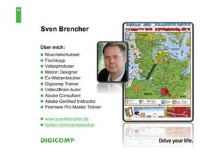 Sven Brencher is a video producer and motion designer with expertise in Photoshop, After Effects, and Premiere Pro, offering online video production services. The document outlines various applications for video clips across different platforms including websites, social media, and DVDs, while also detailing encoding technologies and profiles for video formats. Additionally, it provides specifications for different video resolutions and bitrates.