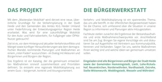 In den vergangenen Monaten nahmen Verkehrsplaner die Region Heide genauestens unter die Lupe. Das Zwischenergebnis: Knapp 10.000 Personen pendeln berufsbedingt zwischen der Stadt Heide und dem Umland, was teilweise zu großen Verkehrsbelastungen führt. Alleine die Bundesstraße B203 am Heider Marktplatz passieren rund 18.000 Fahrzeuge täglich. Das Fahrrad spielt übrigens eine wichtigere Rolle als angenommen: Über ein Drittel der Bevölkerung ist täglich auf zwei Rädern unterwegs. Im nächsten Schritt des Projektes geht es nun um die Entwicklung konkreter Maßnahmen, um die Mobilität in der Region zu verbessern. Alle Bürgerinnen und Bürger haben die Chance, sich an dieser Planung zu beteiligen. Wer sich über das Projekt informieren möchte und eigene Vorschläge einbringen will, ist herzlich zur Bürgerwerkstatt am 9. Oktober im Heider Bürgerhaus eingeladen. Weitere Informationen finden Sie unter www.heide.de