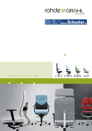 Das Dokument präsentiert die Kollektion 2011 von Bürostühlen und Besucherstühlen der Marke Rohde & Grahl, die für ihr durchdachtes Design, hochwertige Materialien und ergonomische Lösungen bekannt sind. Die Produktpalette umfasst verschiedene Sitzkonzepte, die den neuesten ergonomischen Erkenntnissen der Arbeitsmedizin gerecht werden und eine optimale Anpassung an individuelle Bedürfnisse ermöglichen. Besonderes Augenmerk liegt auf der Förderung von gesundem Sitzen und der Reduzierung von Rückenbeschwerden durch innovative Mechaniken.