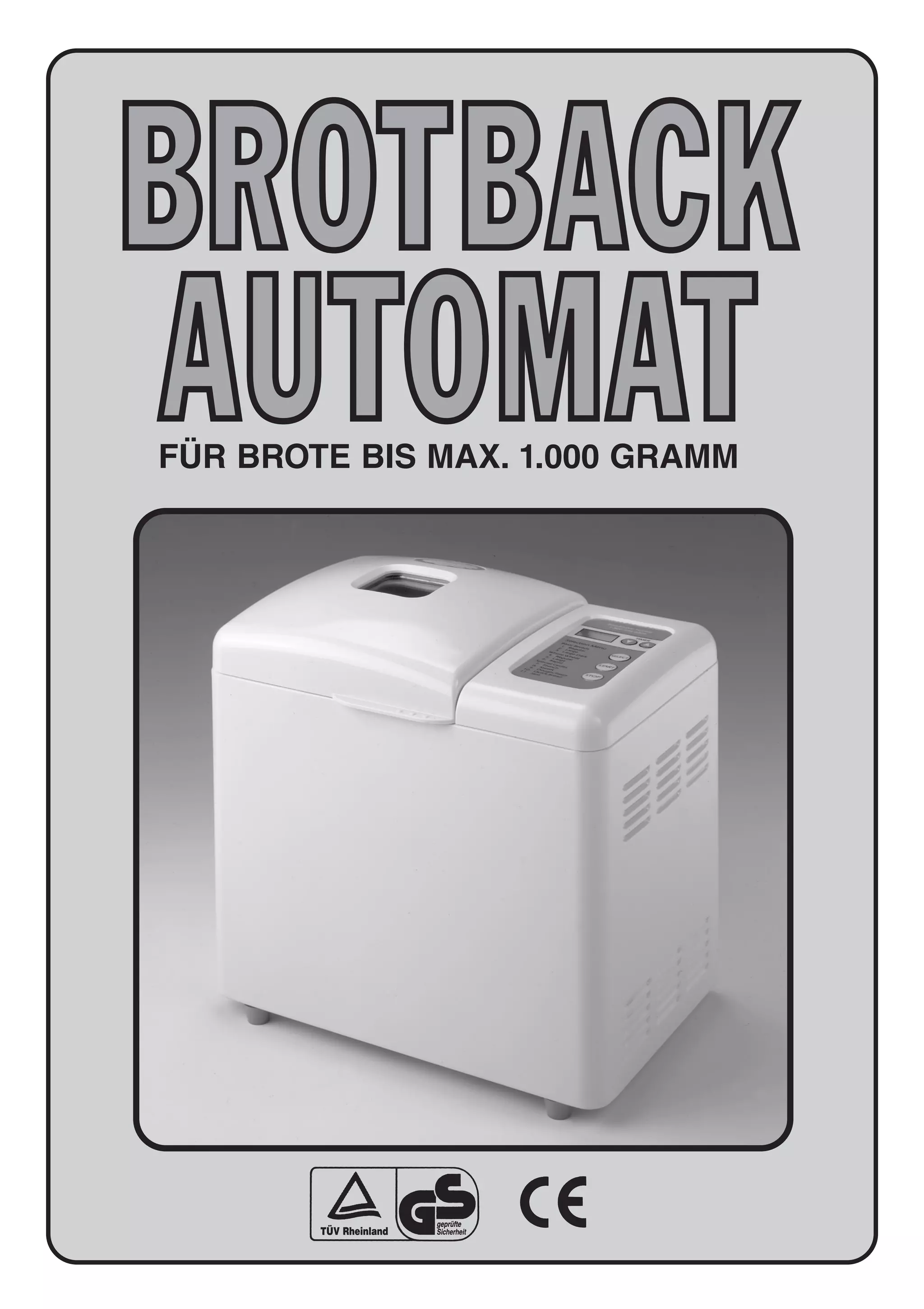 Das Dokument beschreibt die Bedienung und Sicherheitshinweise des W&K Brotbackautomaten, der für Brote bis zu 1.000 Gramm geeignet ist. Es enthält Informationen über die verschiedenen Programme, die zur Herstellung von Brot, Teig und Marmelade verwendet werden können, sowie detaillierte Anweisungen zur Nutzung und Reinigung des Geräts. Außerdem werden wichtige Sicherheitshinweise gegeben, die beim Betrieb beachtet werden müssen, um Unfälle und Beschädigungen zu vermeiden.