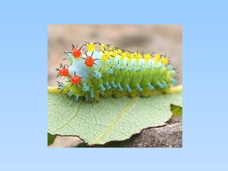 Das Dokument beschreibt verschiedene Insekten und deren Lebenszyklen, insbesondere von der Raupe bis zum Schmetterling. Es verwendet wiederholte Strukturen, um Informationen über die Eigenschaften und Merkmale dieser Insekten zu sammeln. Der Text scheint interaktiv zu sein, mit Platzhaltern, die zum Ausfüllen einladen.