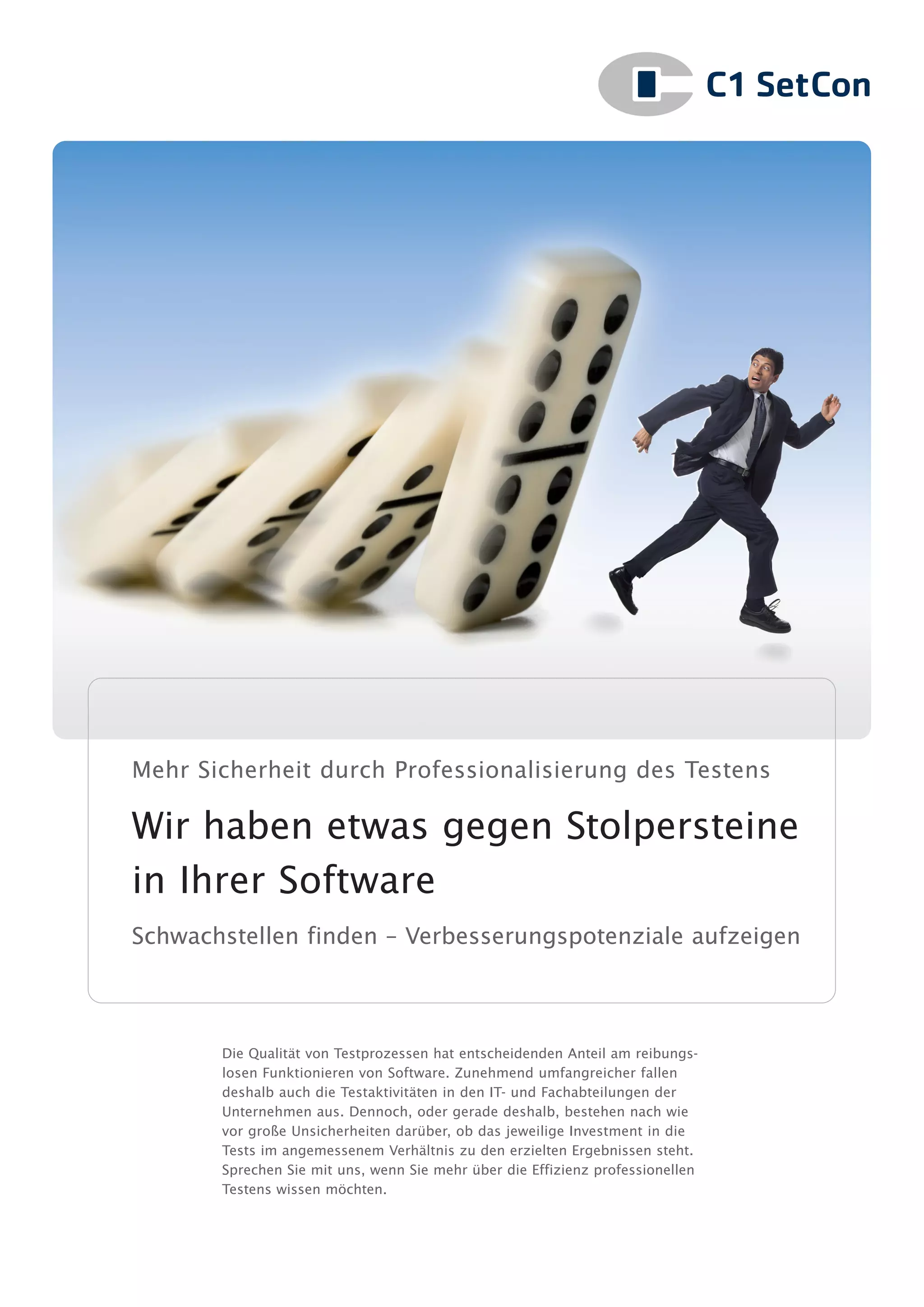 Das Dokument beschreibt die Bedeutung der Professionalisierung von Testprozessen in der Softwareentwicklung, um Schwachstellen effizient zu identifizieren und die Qualität der Software zu gewährleisten. Es wird betont, dass professionelles Testen auf Erfahrung und Best Practices beruhen sollte, um ineffiziente Tests zu vermeiden und den Erfolg von Softwareprojekten zu sichern. Die c1 setcon GmbH bietet umfassende Unterstützung und Beratung in diesem Bereich durch erfahrene Mitarbeiter und maßgeschneiderte Lösungen an.