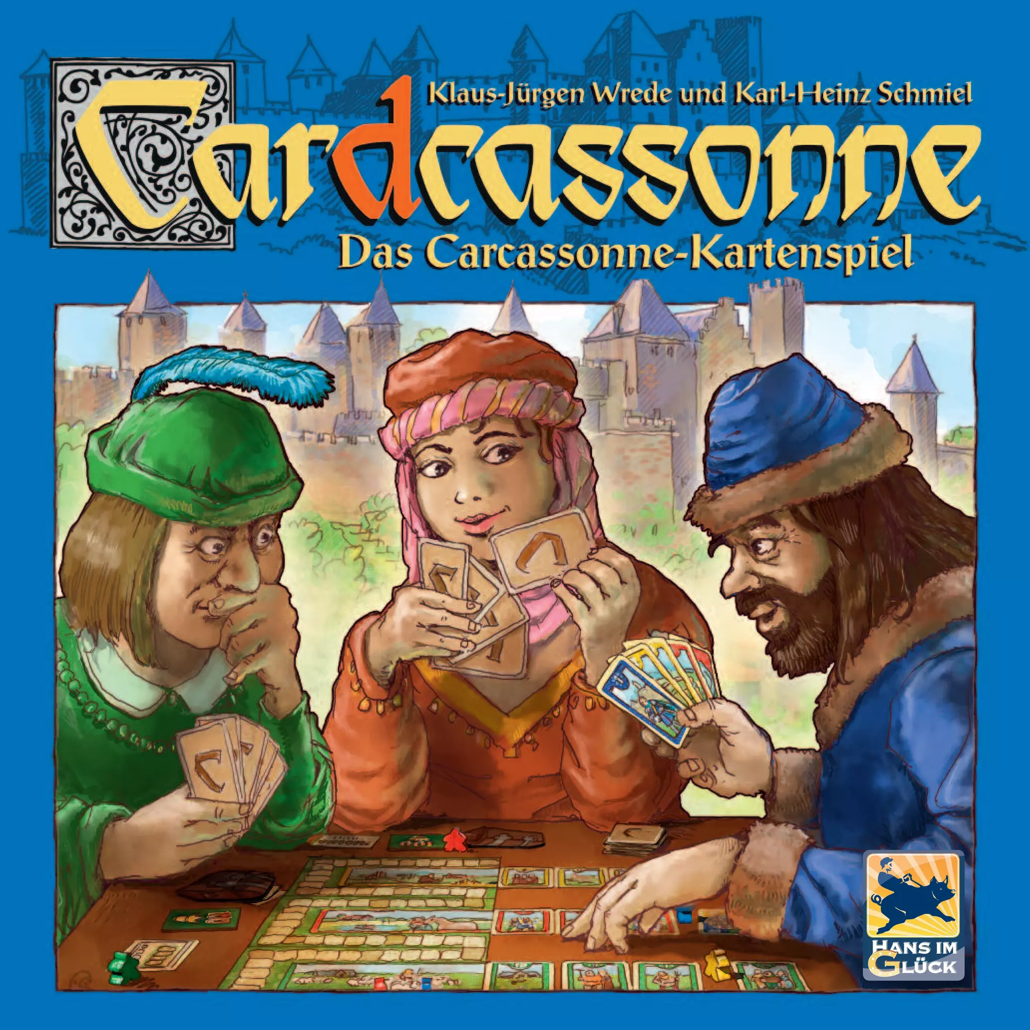 Das Dokument beschreibt das 'Carcassonne-Kartenspiel', das verschiedene Spielmaterialien wie Spielpläne, Karten und Figuren umfasst. Ziel des Spiels ist es, durch das geschickte Anlegen von Karten und das Sichern von Reihen Punkte zu sammeln, wobei der Spieler mit den meisten Punkten am Ende gewinnt. Es werden Spielregeln, der Ablauf von Runden und die Wertung von Karten detailliert erläutert.