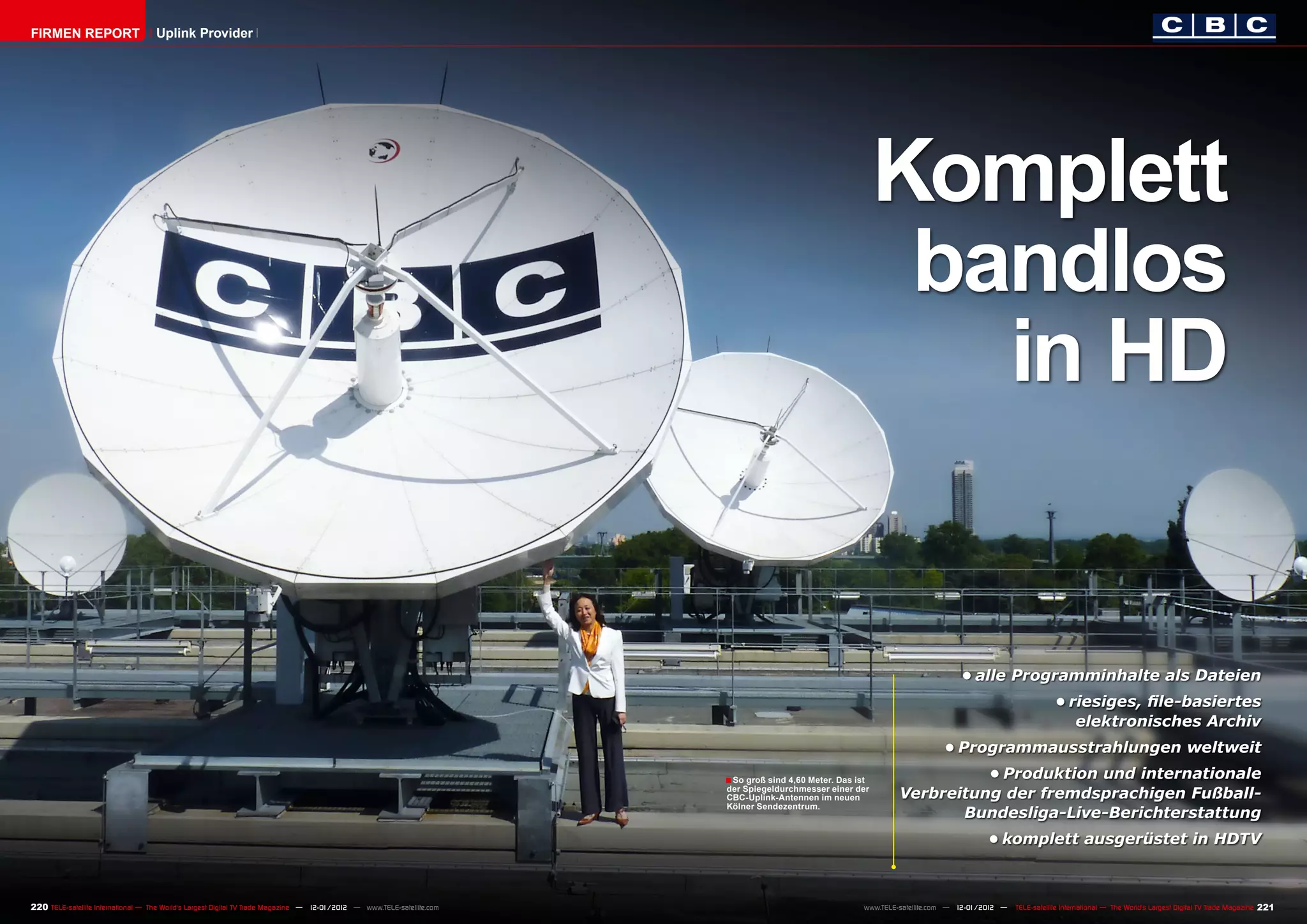 Das Cologne Broadcasting Center (CBC) ist ein modernes, bandlos arbeitendes Sendezentrum in Köln, das für die Mediengruppe RTL zuständig ist und über innovative Technologien für die Produktion, Sendebetrieb und Archivierung verfügt. Mit einem riesigen, elektronischen Archiv speichert CBC über 160.000 Programmstunden und ermöglicht durch ein Glasfasernetz Live-Übertragungen und die Nutzung von SNG-Fahrzeugen für die Berichterstattung. Das Sendezentrum ist darauf ausgelegt, hohe Verfügbarkeit und Sicherheit der Sendesignale zu gewährleisten, einschließlich der Vorbereitungen für HDTV und 3D-Inhalte.