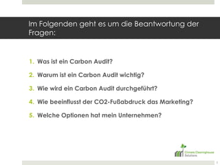 Ein Carbon Audit ist die Messung und Verwaltung der CO2-Emissionen eines Unternehmens, die zur Entwicklung einer langfristigen Strategie zur Reduzierung von Treibhausgasen dient. Es ist wichtig für soziale Verantwortung, gesetzliche Anforderungen und potenzielle Energieeinsparungen. Unternehmen können CO2-Emissionen ausgleichen, indem sie Projekte zur Emissionsreduktion unterstützen und verschiedene Strategien zur Minimierung ihres ökologischen Fußabdrucks implementieren.