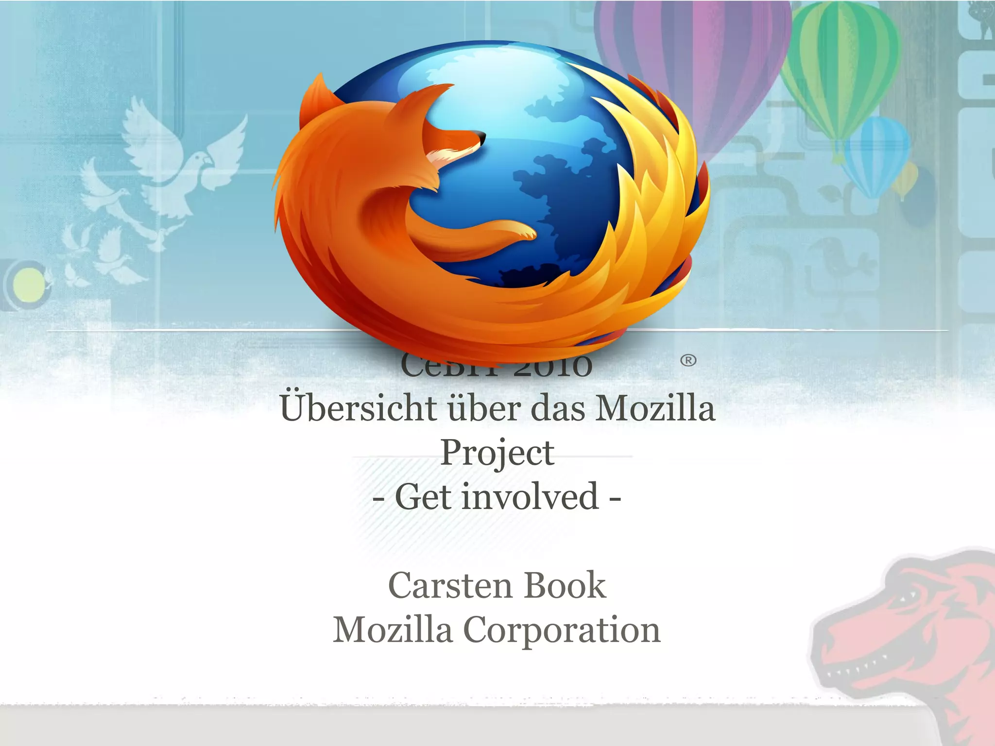 Das Dokument bietet einen Überblick über das Mozilla-Projekt und die Möglichkeiten für Freiwillige, sich zu engagieren, insbesondere im Bereich der Qualitätssicherung. Es beschreibt die vielfältigen Wege zur Teilnahme, von Bug-Reporting über Marketing bis hin zur Software-Entwicklung, und betont die Wichtigkeit der Community für den Erfolg von Open-Source-Projekten. Interessierte können sich ohne vorherige Registrierung beteiligen und sollten die Ressourcen auf mozilla.org nutzen, um weitere Informationen zu erhalten.