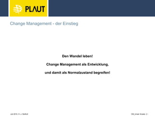 Change Management wird als notwendiger Prozess für alle Veränderungen angesehen, der das Ziel verfolgt, Betroffene aktiv zu Beteiligten zu machen, indem er die Transformation im Denken der Mitarbeiter fördert. Es wird betont, dass erfolgreicher Wandel ein klar strukturiertes Informationsmanagement, Training und Coaching erfordert und nicht nur auf Projekte beschränkt ist, sondern auch eine nachhaltige Verhaltensänderung und Kulturveränderung in Unternehmen nach sich zieht. Durch effektives Change Management werden Unternehmen in der Lage, schneller und kostengünstiger auf Veränderungen zu reagieren und die Motivation sowie Zufriedenheit der Mitarbeiter zu steigern.