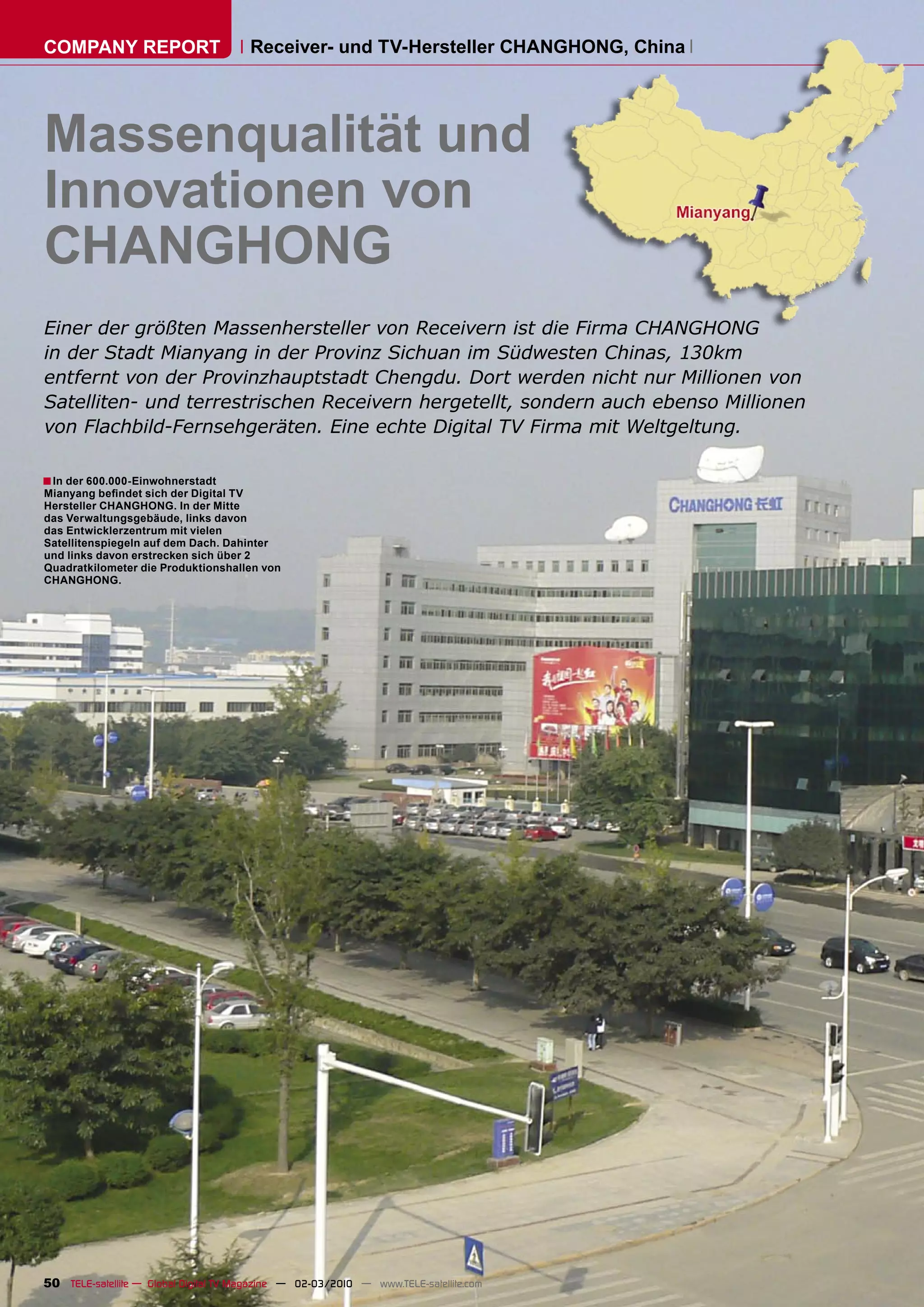Changhong, ein führender Hersteller von Receivern und Fernsehern aus der chinesischen Stadt Mianyang, produziert jährlich bis zu 12 Millionen digitale Set-Top-Boxen und Fernseher und hat umfangreiche Investitionen in Qualitätssicherung und Entwicklung getätigt. Das Unternehmen verfolgt das Ziel, ein globaler Anbieter von Digital-TV-Technologien zu werden und kooperiert dabei mit führenden Chipherstellern. Mit modernen Produktionsanlagen und einem Fokus auf internationale Märkte strebt Changhong an, seine Marktanteile, besonders in Bezug auf terrestrische digitale Receiver, auszubauen.